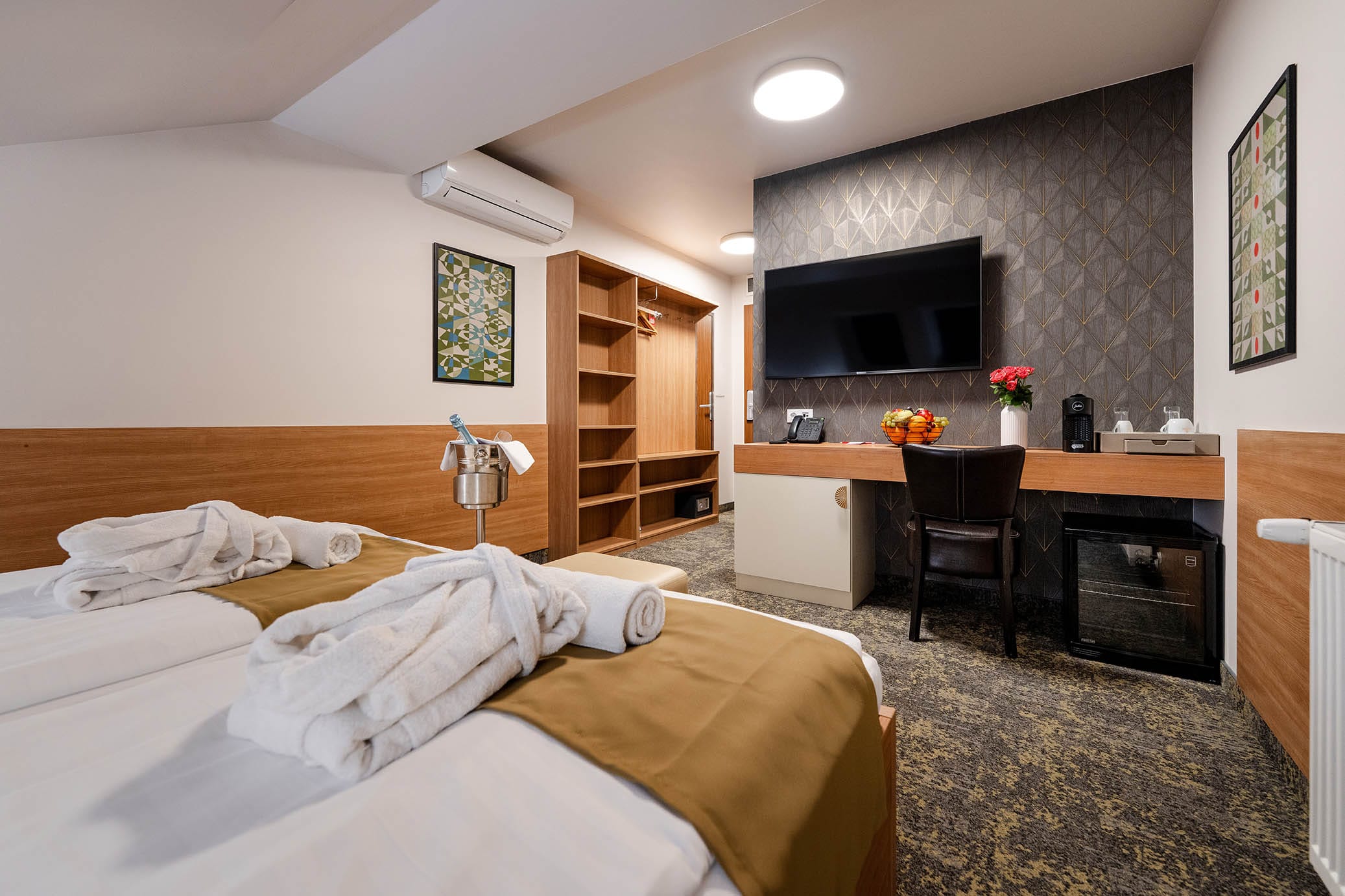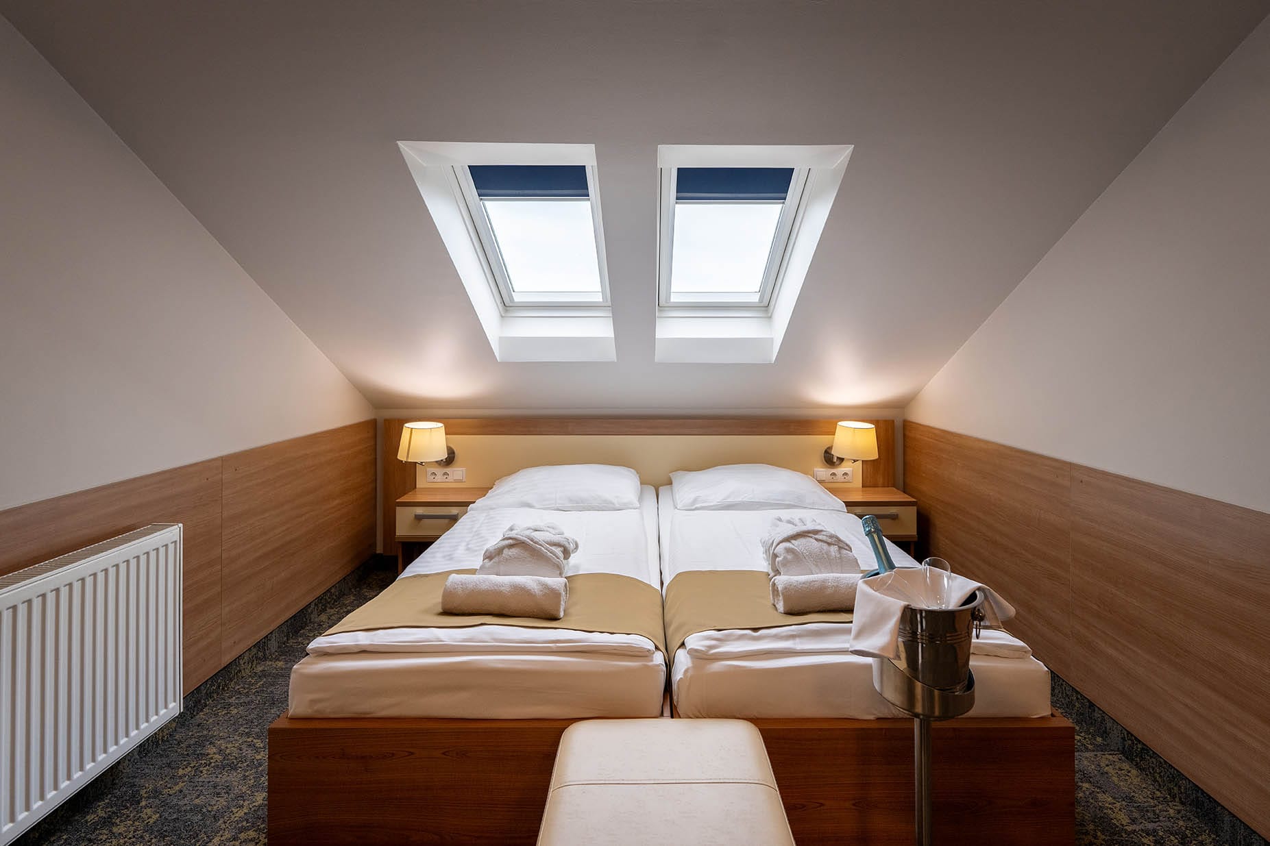 A Standard tetőtéri szobát azoknak ajánljuk, akik a kényelmet és a praktikumot egyaránt értékelik. A 20 négyzetméteres szobák kétágyas franciaággyal rendelkeznek, valamint saját fürdőszobával vannak ellátva.